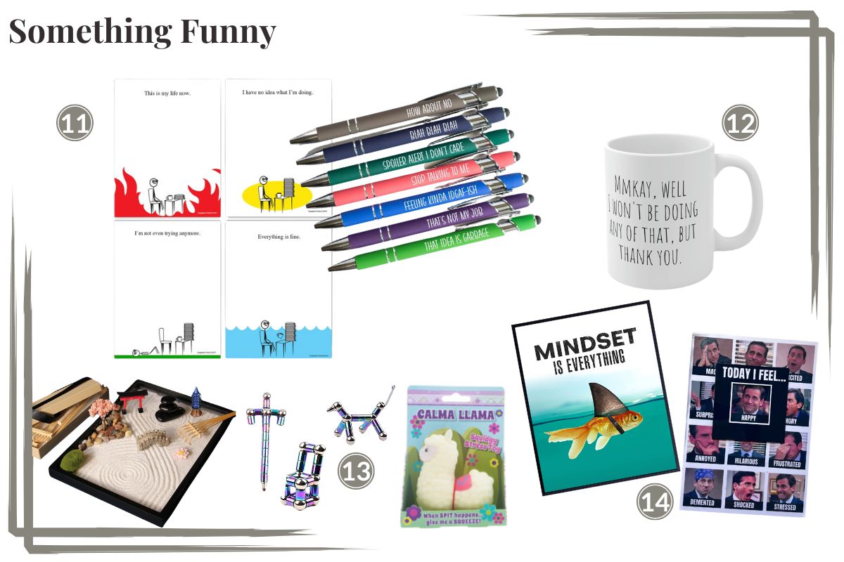Who doesn’t love a good laugh (especially at work)? Here are some light-hearted gifts to add a little humor to that special coworker’s day.